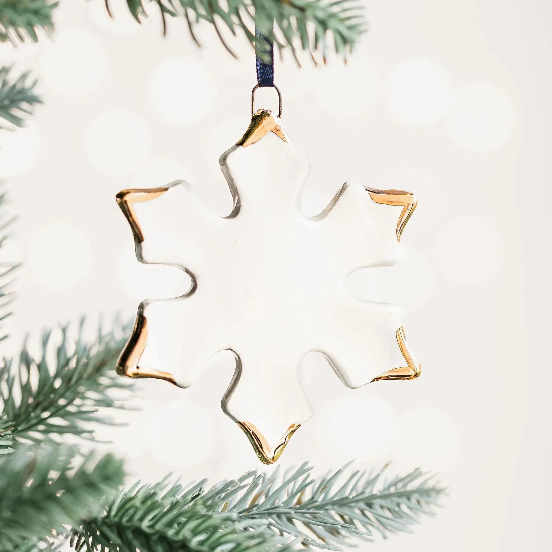 The perfect addition to your Christmas tree. Each decoration has been glazed with a touch of gold to ensure this snowflake will glisten on your tree!