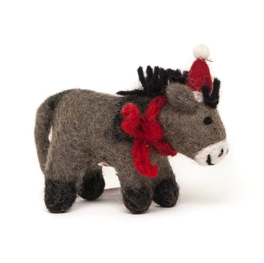 This cute little donkey with a Christmas hat & knitted scarf is sure to add some character to your Christmas tree.