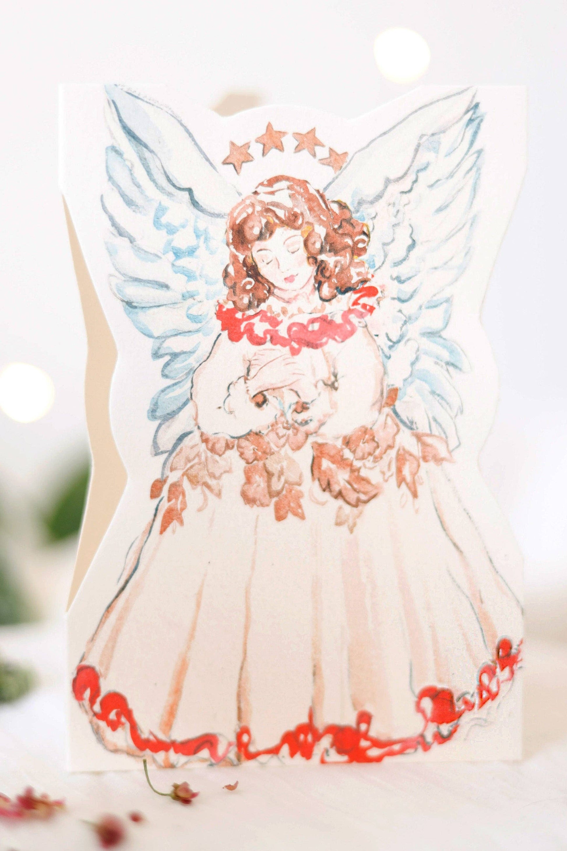 Design to evoke feelings of nostagia this Christmas card features a gorgeous painted angel.
